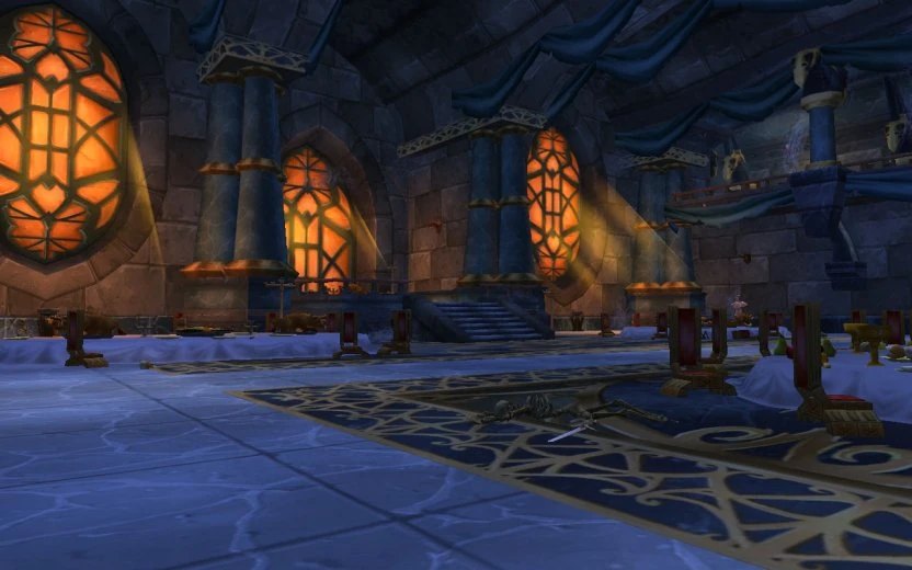 In The Last Guardian, Karazhan is described as being an isolated tower, no mention of any village around the tower's base. Quite the contrary in fact. Medivh is described as a hermit, rarely taking visitors into Karazhan, yet in World of Warcraft, it seems he held a banquet with many, many guests who, at some point, became undead. It also seems contrary to Medivh's character to have a harem inside Karazhan, yet that's exactly what we find in the Maiden of Virtue's area. We can only assume they were not undead and demons all along. It is possible Prince Malchezaar brought them with him in order to keep Moroes busy and unaware of what was going on, but it seems an odd thing to do. Another possibility is that an unknown tenant of Karazhan, or even the original builder or owner, made use of these features as there is a vision mentioned in the book of drunk people sitting around a table. Also, Karazhan included a bailey which may have had enough room for a small village.LG #?