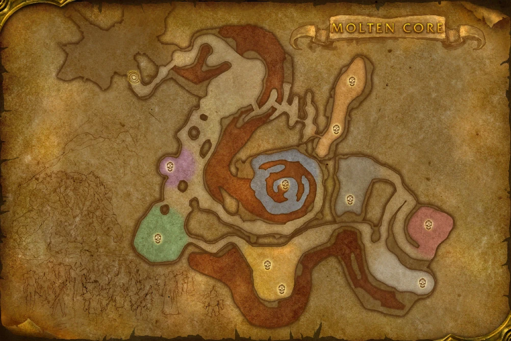 The Molten Core is a level 60 raid dungeon located within Blackrock Mountain, home to Ragnaros the Firelord. It was one of two forty (40) player raid dungeons available upon release of World of Warcraft, with the other being Onyxia's Lair. Considered the pinnacle of raiding achievement at the time, the Molten Core enticed adventurers to enter the instance in the search of realm glory. Just before the re-opening of the Dark Portal, Ragnaros, the land's fiery overlord was cast down from his dark throne and returned to the Firelands. He now rages war on the world tree Nordrassil.