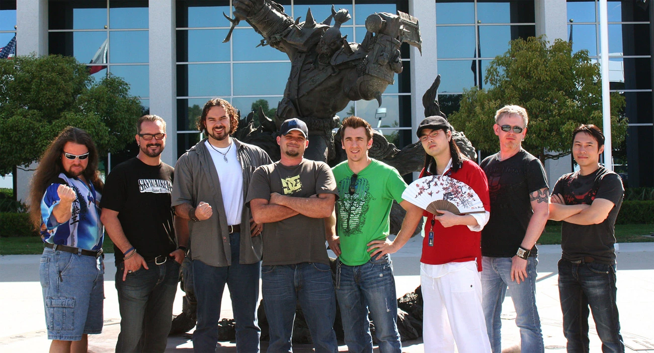From left to right: Samwise, Chris Metzen, René Koiter, Thammer, Raneman, Drawgoon, Red Knuckle and Glowei.